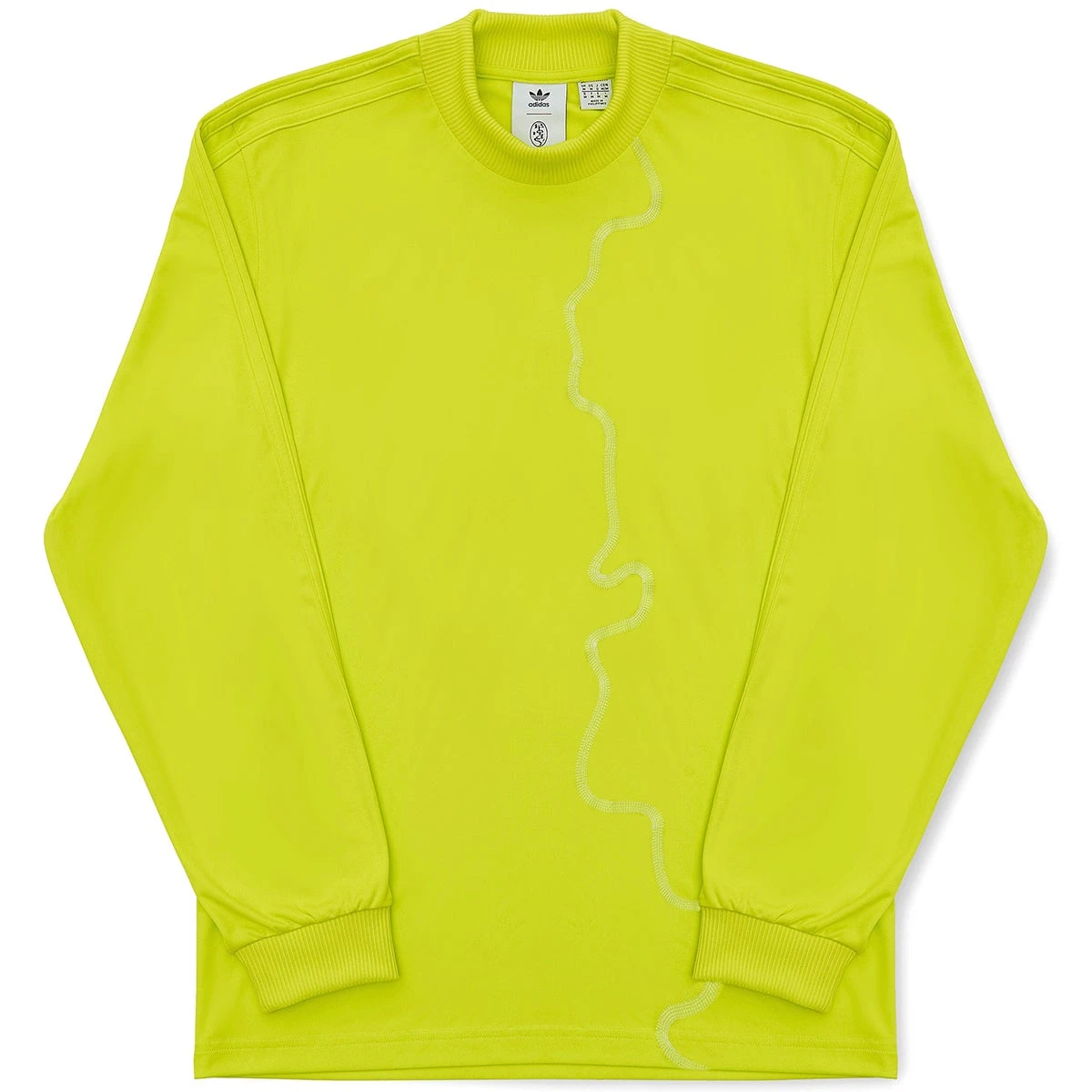“London-based artist and skater Blondey McCoy brings terrace style to adidas Skateboarding with this jersey. The long sleeves and mock neck are pure 80s football style. A graphic on the front is an outline of the Thames, tying the jersey back to Blondey’s hometown. AEROREADY manages moisture to keep you dry and comfortable.