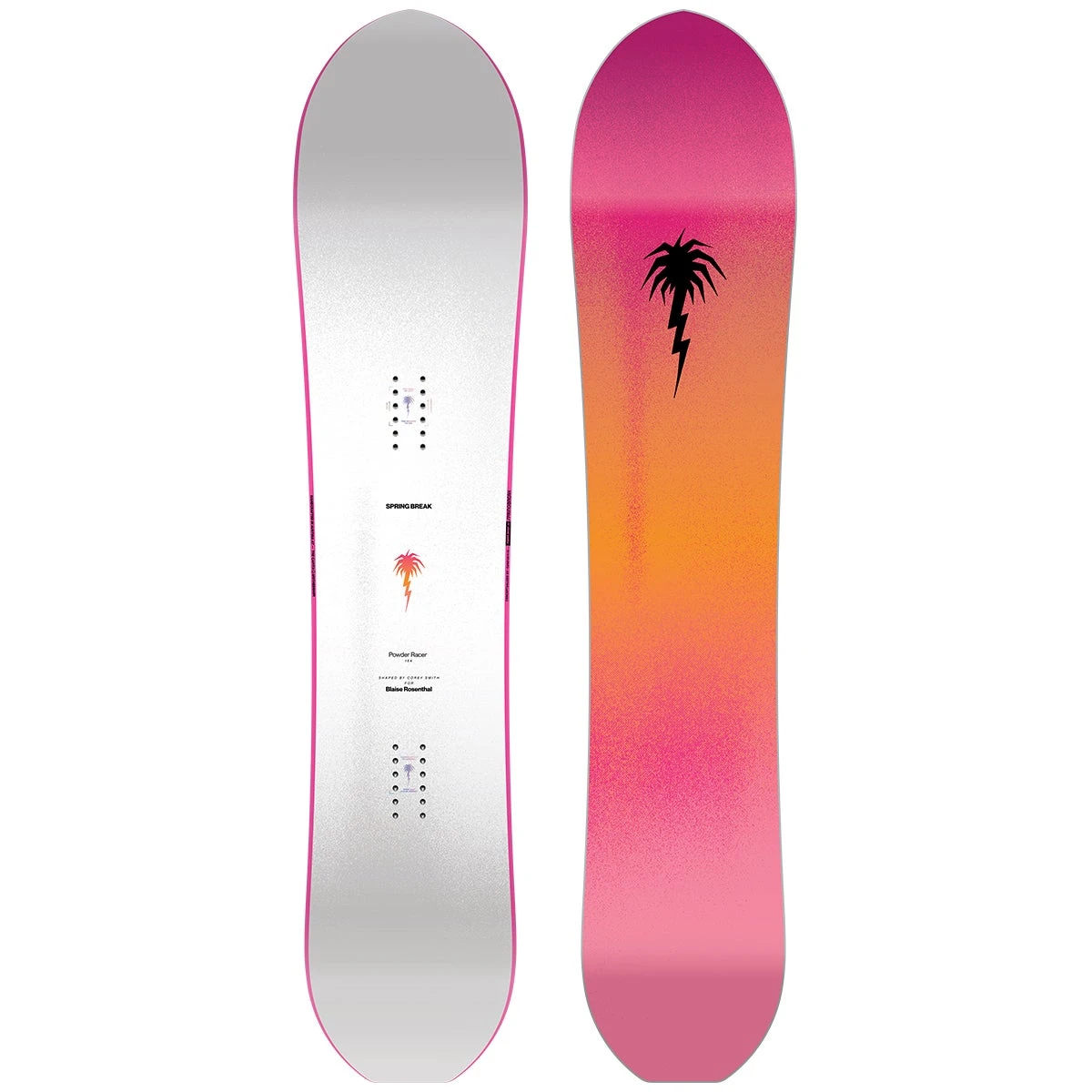 The Spring Break Powder Racers utilize one of the best-selling shapes from the sought-after Ultralight Powder Displacement Snowcraft collection with a more accessibly priced construction. Utilizing a large surface area to increase floatation and deep sidecuts to carve up the slopes, the Powder Racers produce party vibes in powder and on groomers alike.