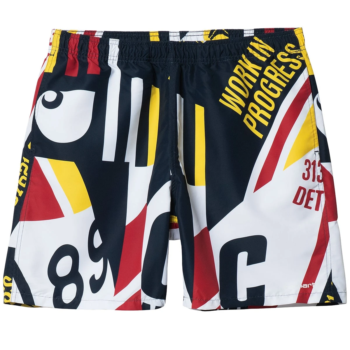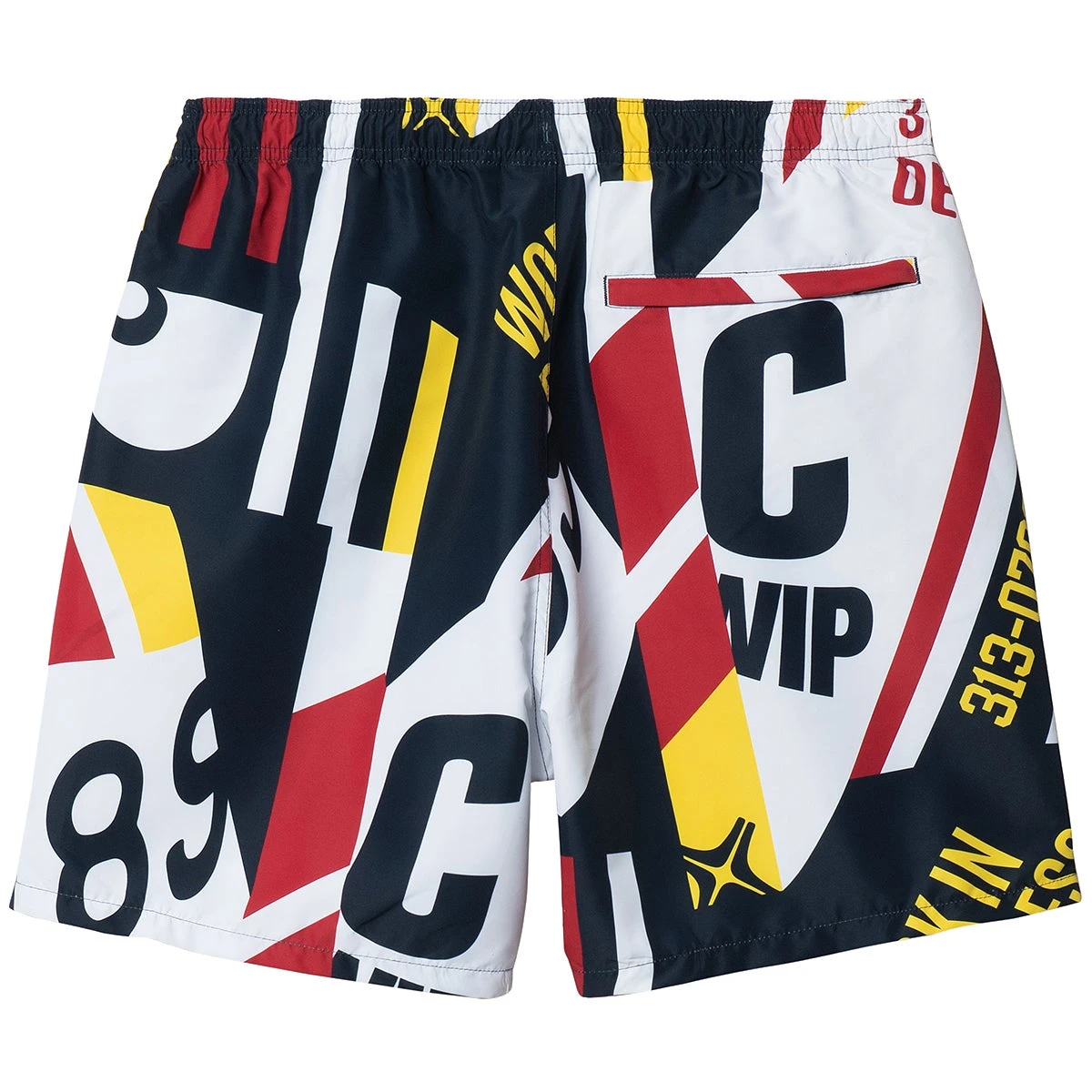 The Island Swim Trunk is created from a lightweight polyester weave. The garment is unlined. It also features an adjustable waistband with drawcord, side seam pockets, and a key holder in the zippered back pocket.
