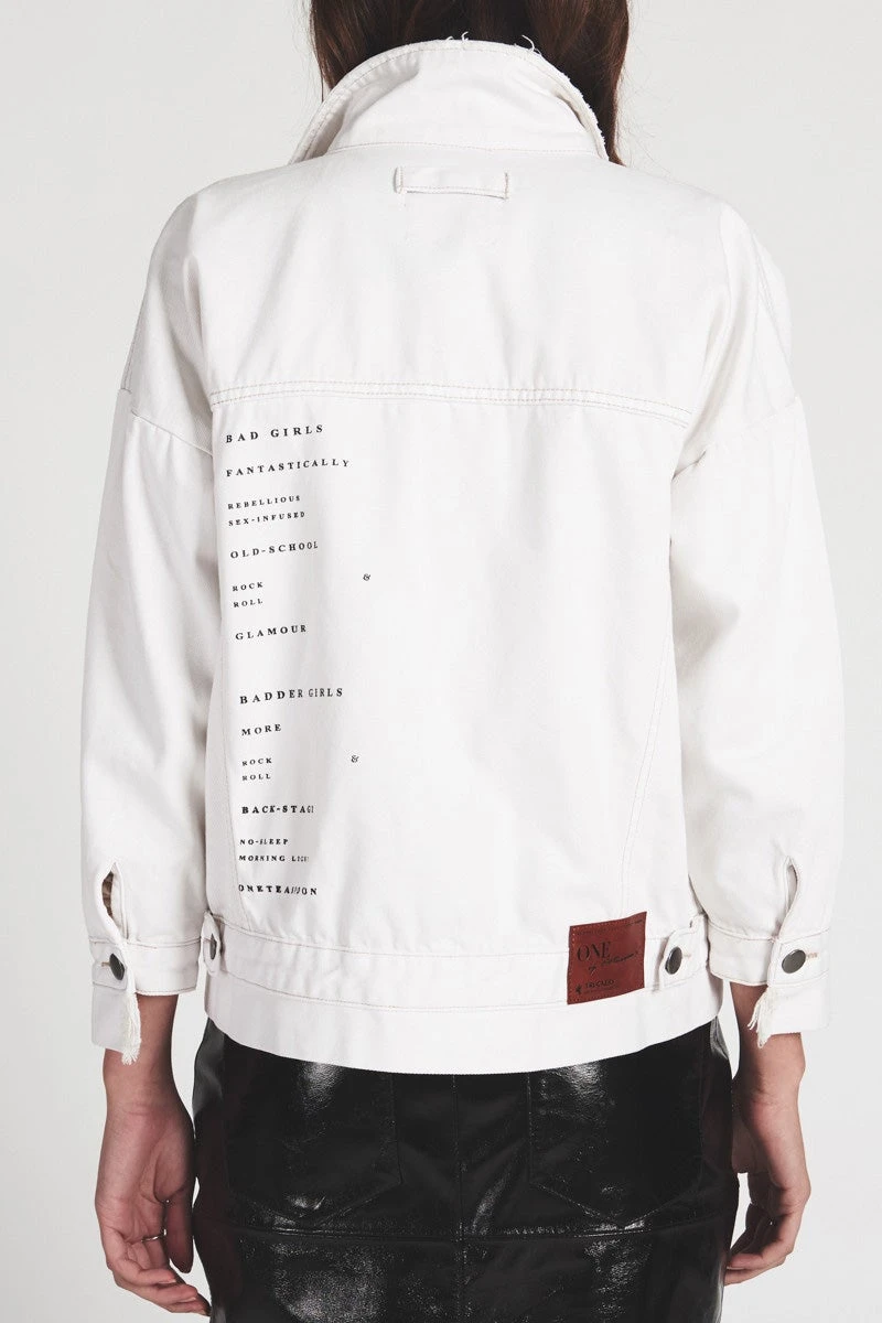 The OneTeaspoon Cococash Rebellious Denim Jacket is the ultimate white classic denim button up jacket with a twist. Heavy weight white denim.