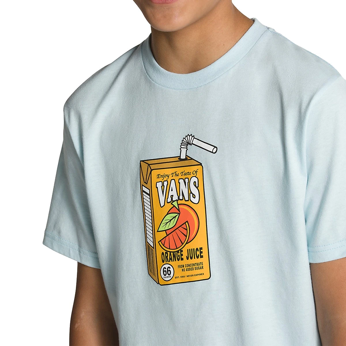 The Kids Vans Juice Box T-Shirt is a ringspun cotton tee with signature front logo graphics.