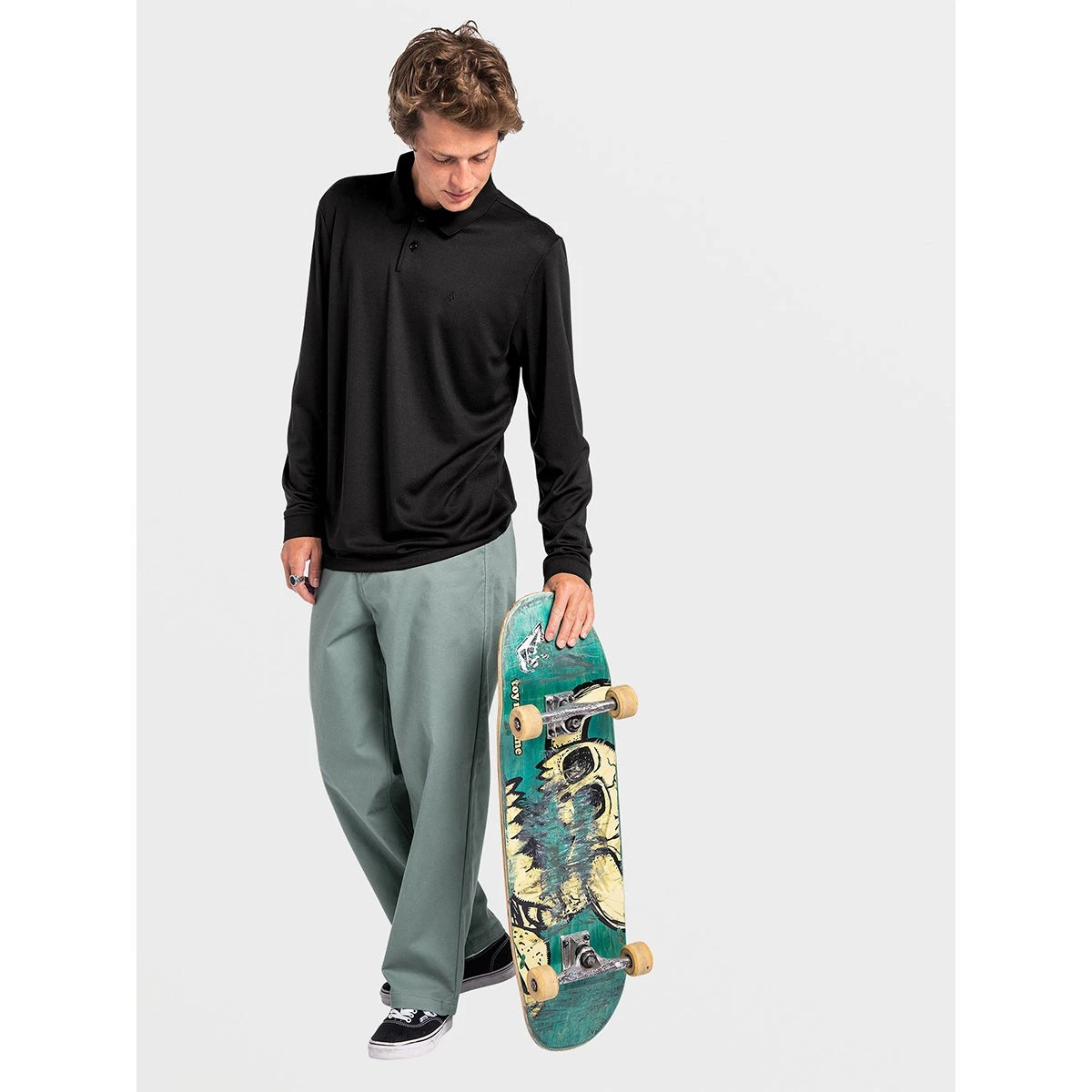 Legendary Volcom rider Chris Pfanner worked with our design team to produce a long-sleeve shirt that’s built for breathability and comfort. Constructed with a polyester fabric blend and cut in a modern fit, it leverages the slight stretch and moisture-wicking of elastane to keep you cool and stylish.