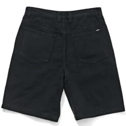 The Bull Denim 91 Shorts in Washed Black are loose fitting shorts with a fixed waist with belt loops. They are made from bull denim and have a 5 pocket construction. Made from 100% Cotton Bull Denim.